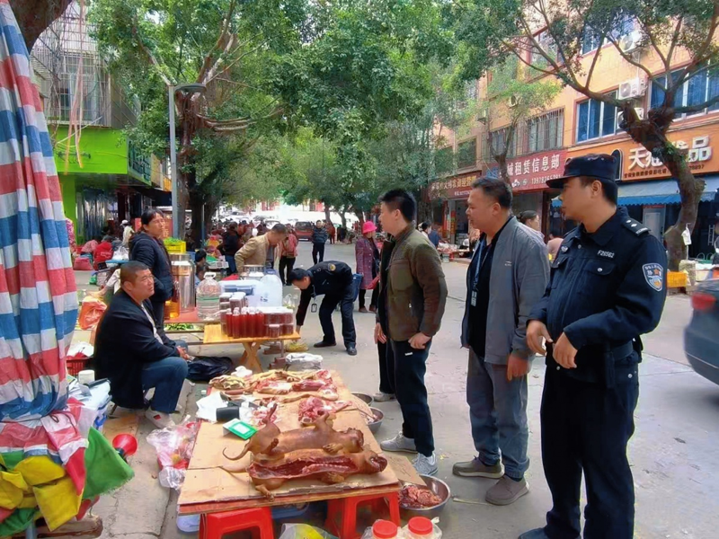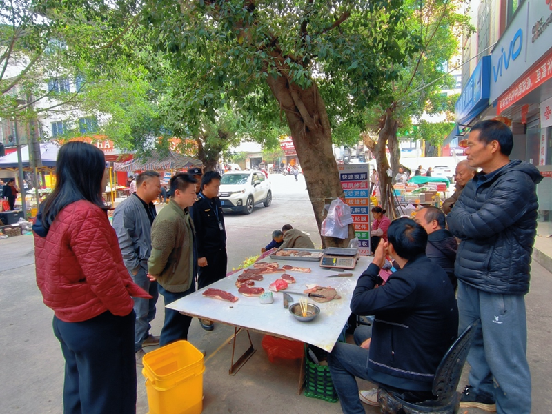 “食物安全没有‘零危险’,但监管有必要‘零忍受’。”时值年末安全防备要害阶段,一起外来肉类摊贩增多,给江口乡肉类食物安全提出新的要求。为实在保证人民大众吃上定心肉、安全肉,江口乡于12月4日圩日买卖顶峰时段,安排商场监管所、派出所、乡综合法令大队展开联合专项整治举动,着力规范商场次序,守稳守牢大众的“肉盘子”。