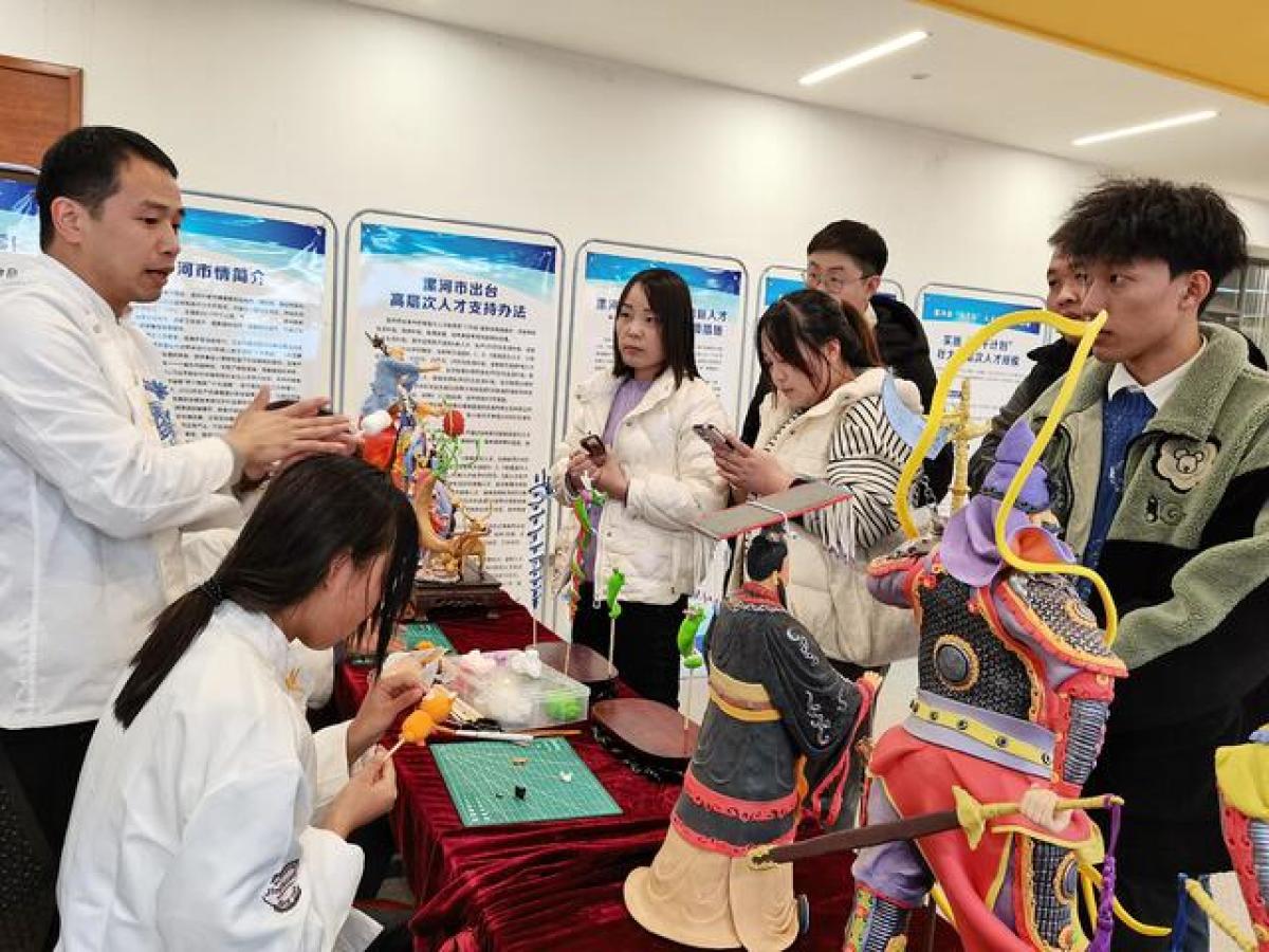 为进一步展示漯河丰厚的历史背景和文化底蕴,有关部门负责人不仅详细的介绍了漯河的城市特色和产业高质量发展现状及特点,还邀请河南省非物质文化遗产——“赵氏面塑”传人赵闯及其团队现场展示面塑技艺。招聘会期间,漯河市有关部门负责人和江南大学有关负责人围绕强化校企合作、校地合作、互惠发展等进行了深入座谈。