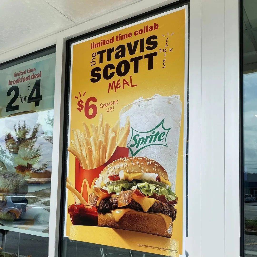 可能买这份套餐的朋友心态和我都差不多,大家也都认识他。有趣的是在点餐的时候,店员还在问领班「Travis Scott Meal」要怎么下单。在我看来这其实算是非常常规的代言行为,就像国内这类型的快餐品牌,会找个「鲜肉」在广告上吃炸鸡,但他们没这个能力再做周边去贩卖。