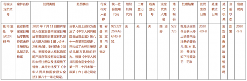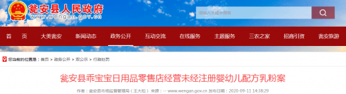 2020年9月11日,贵州县政府网站通报了一起母婴零售门店经营未经注册婴幼儿配方乳粉的处罚案件。