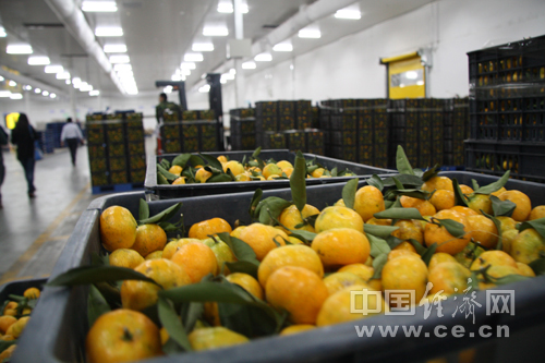 在潍坊一家大型超市配送中心一批水果将被配送到各个门店。中国经济网记者王城/摄