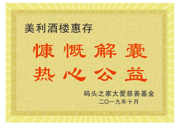 为了宏扬尊老敬老的中华民族传统美德和感恩家乡父老三十年来的关怀关爱,美利酒楼全资资助今日宴席的一切费用。一起,为了表达对慈悲公益举动这一美丽工作的支撑,美利酒楼捐资公民币壹万元(¥10000.00)给码头之家大爱慈悲基金,用以支撑码头之家展开各项民间慈悲活动。