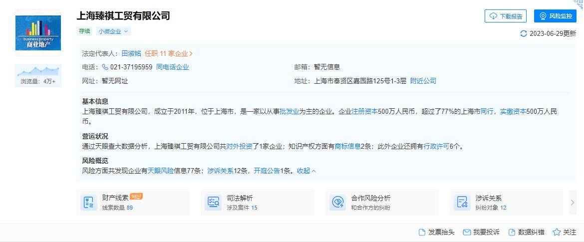 除了上述行政处分外,据天眼查信息数据显现,上海臻祺工贸有限公司还曾有别的6条行政处分信息。