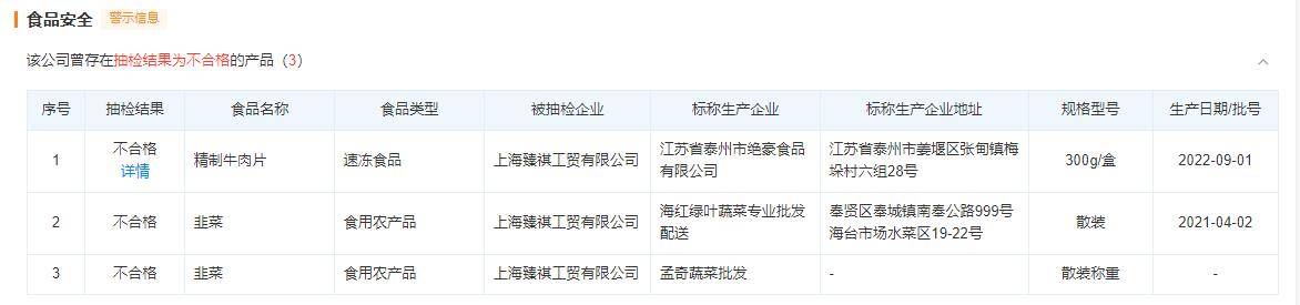 除了此次抽检不合格信息外,天眼查还显现,上海臻祺工贸有限公司还有2次前史抽检不合格信息。