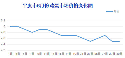 6月份鸡蛋价格呈跌落态势,本月鸡蛋平均价格为4.80元,较上月比较跌落2.00%,较去年同期比较跌落2.00%。6月份鸡蛋最高价为5.00元,最低价为4.50元。