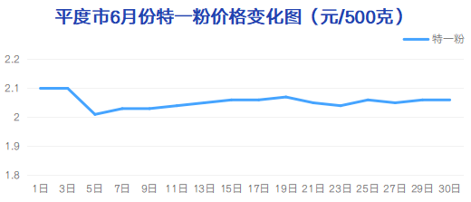 6月份平度市粮油商场行情报价整体平稳,面粉整体呈下降趋势,各种类平均价格分别为,特一粉2.05元(每500克,下同),环比下降4.20%,同比下降6.80%。大米(一级长粒)3.00元,喜燕花生油(5升)99.00元,胡姬花花生油(5升)149.00元,环比、同比根本相等。