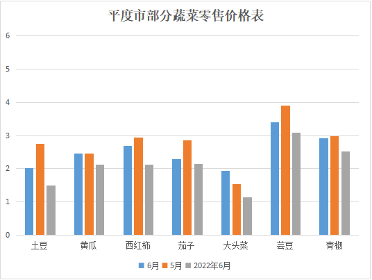 6月份我市商场供应足够,监测的16种蔬菜价格整体平稳,部分蔬菜零售价格较上月有所回落,西红柿环比跌落8.47%;茄子环比跌落19.30%;马铃薯环比跌落26.18%;芸豆环比跌落12.82%。