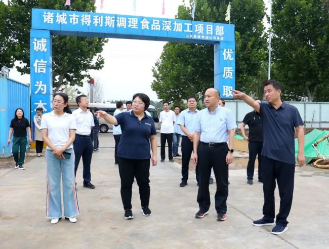 9月19日下午,潍坊诸城市领导张建伟、孟祥韬、赵莉、王爱民等在昌乡镇党委书记刁立武的伴随下到得利斯年产十万吨肉制品项目开展调研。得利斯集团董事长郑思敏伴随调研。