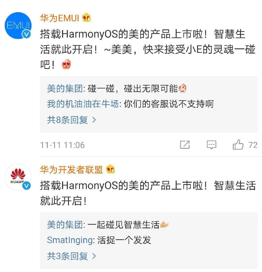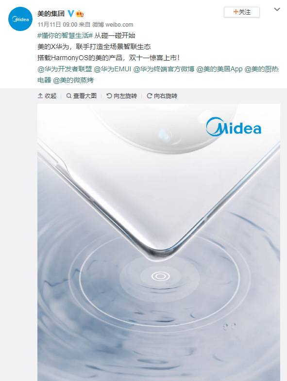 本年双11咱们或许把目光都会集在了打折优惠上,但其实整个商场也在发生着奇妙的改变,传统家电厂商也在不断寻求打破,双十一当天早上,美的集团官方微博正式揭露宣告旗下搭载华为鸿蒙体系的智能家居产品上架,官方的宣传语为“碰见你,秒启懂你的才智日子”。